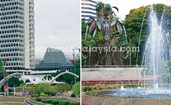 While the streetside landscaping from Jalan Raja Laut to Parliament House is exceptional, a huge concrete pitcher plant themed fountain on the left-hand side of the road was my first encounter with 'wild' KL. Apart from being a place to pose for a photo, the purpose of this oversized carnivorous plant is not clearly defined. The road forms a bridge over the Gombak River. which meets the Klang River just a little further downstream in front of Masjid Jamek. The city's origins are in these two rivers as it was here that tin was discovered and where the first city settlement started in 1857.