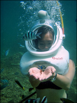 Participants will be given a certificate together with some digital photos of themselves underwater. It cost RM250. For further information, please visit www.borneoseawalking.com